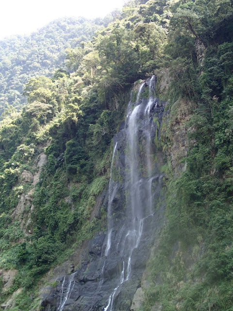 回程的路上,還有許多跑友正在努力向前邁步奮戰著。跑在山裏頭的道路上,除了跑進部落、村莊,或是少數經過的車輛上的人會幫你加油外,最多大概就是水站裡的志工跟跑友們相互加油打氣了。看來這條小小的山路上,今天是最熱鬧的一天。本來以為就這樣一路原路跑回去,後來大會居然安排了一段特別的賽道,那就是跑進信賢步道,再通過信賢吊橋接回馬路。這段碎石步道上,經過幾個小瀑布,遊客比較多,路面窄小,雖不是很好跑,算是有點輕度越野的路,但讓我印象很深刻,記得這段路之前也跟朋友來這裡健走過,沒想到烏來馬也會跑進這段路上。